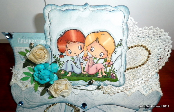 This is just gorgeous Julie. Love the shaped easel card and the doiley heart.